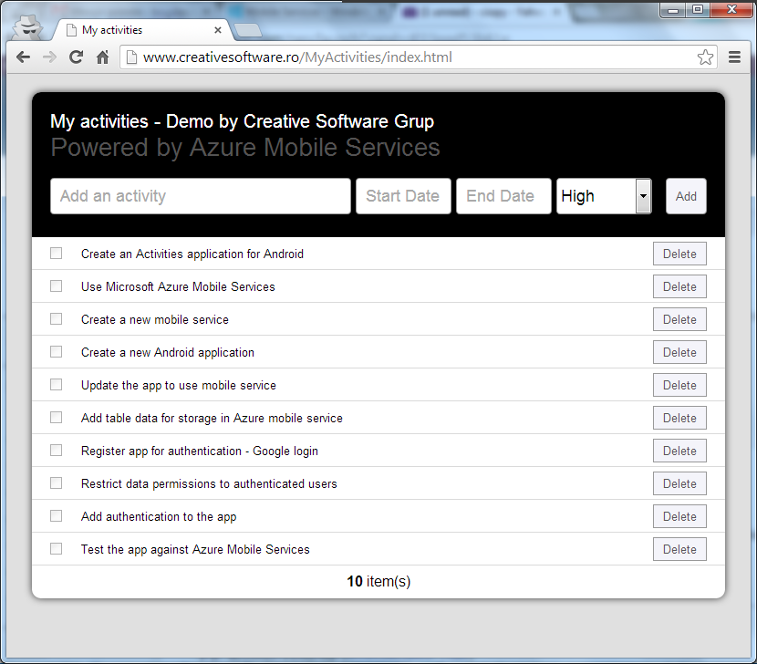 HTML/JavaScript application powered by Azure Mobile Services